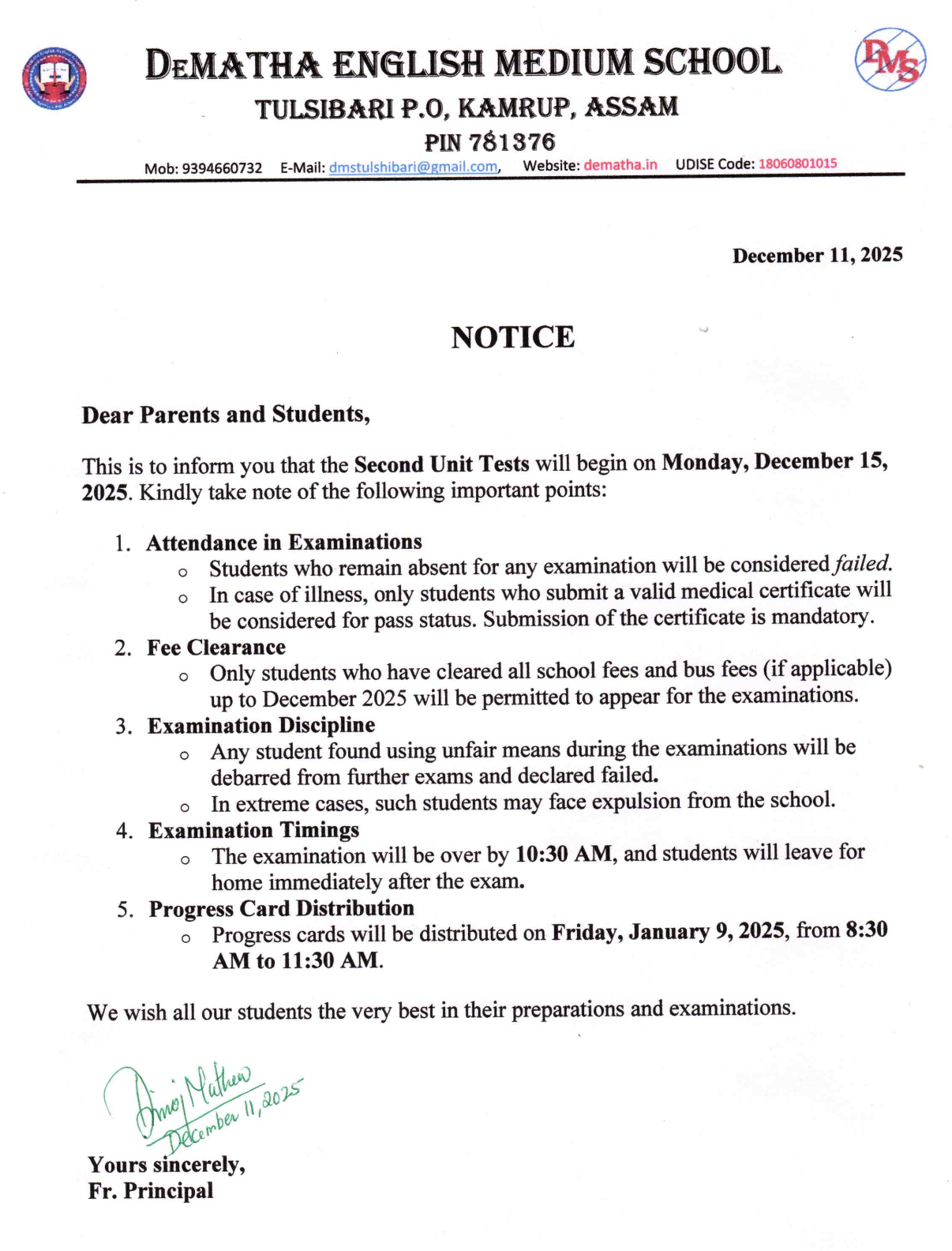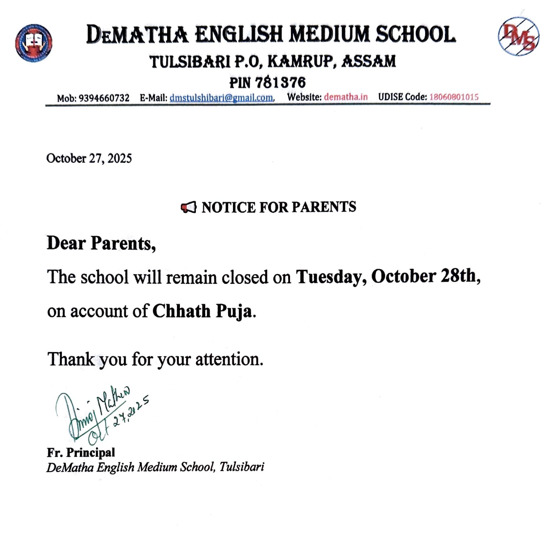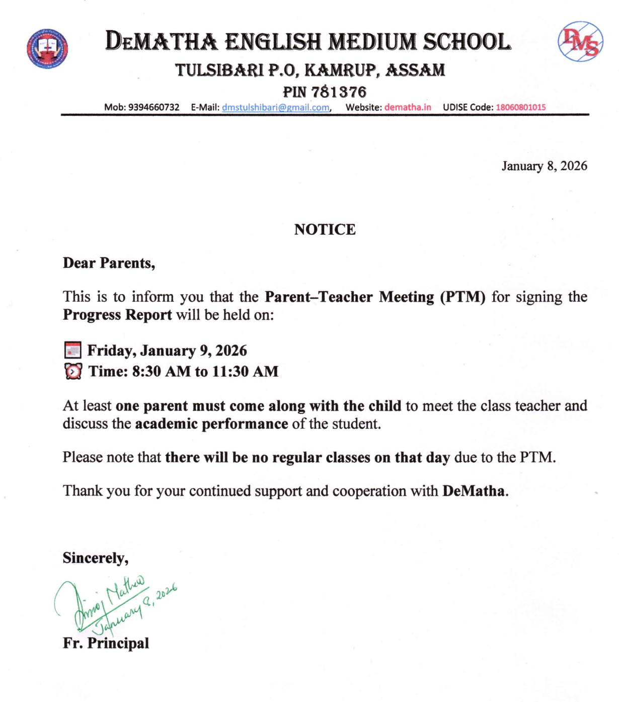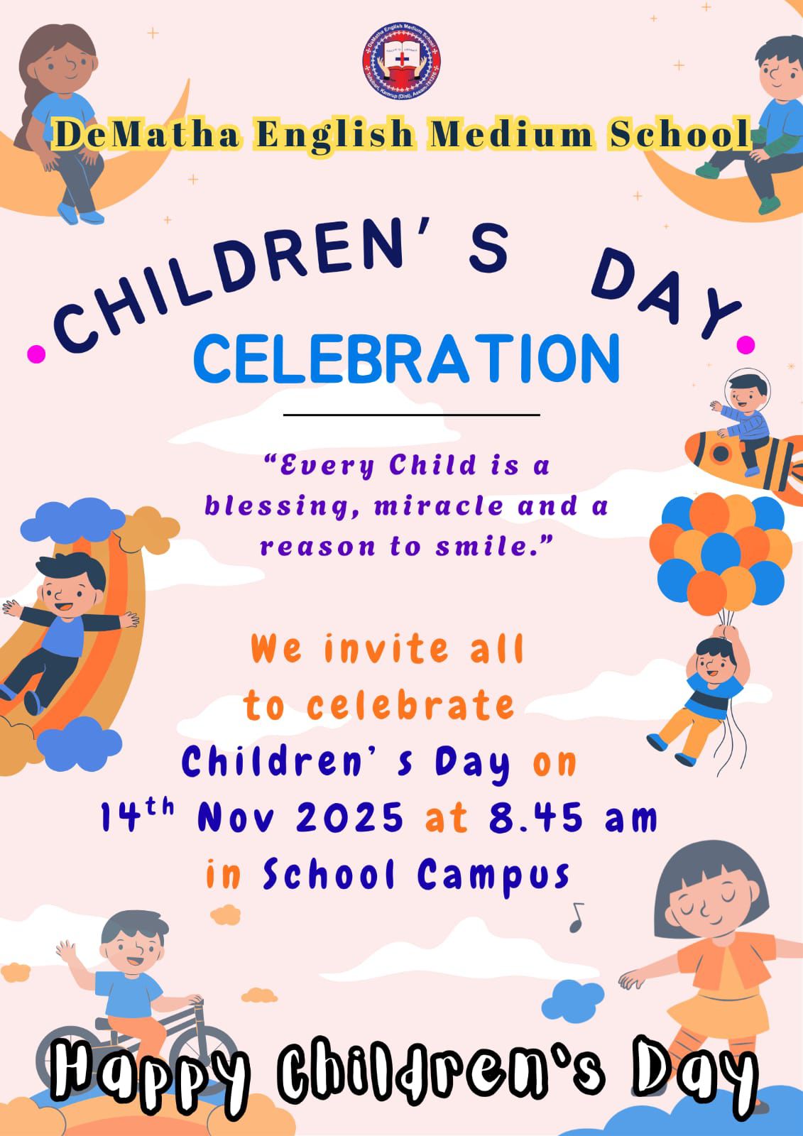 Dear Parents, Students, Faculty, and Staff, It is with immense joy and a deep sense of responsibility that I welcome you to DeMatha English Medium School. Established in 1192, our school is named after St. John de Matha, who was a priest and founder of the Order of the Most Holy Trinity and of the Captives.