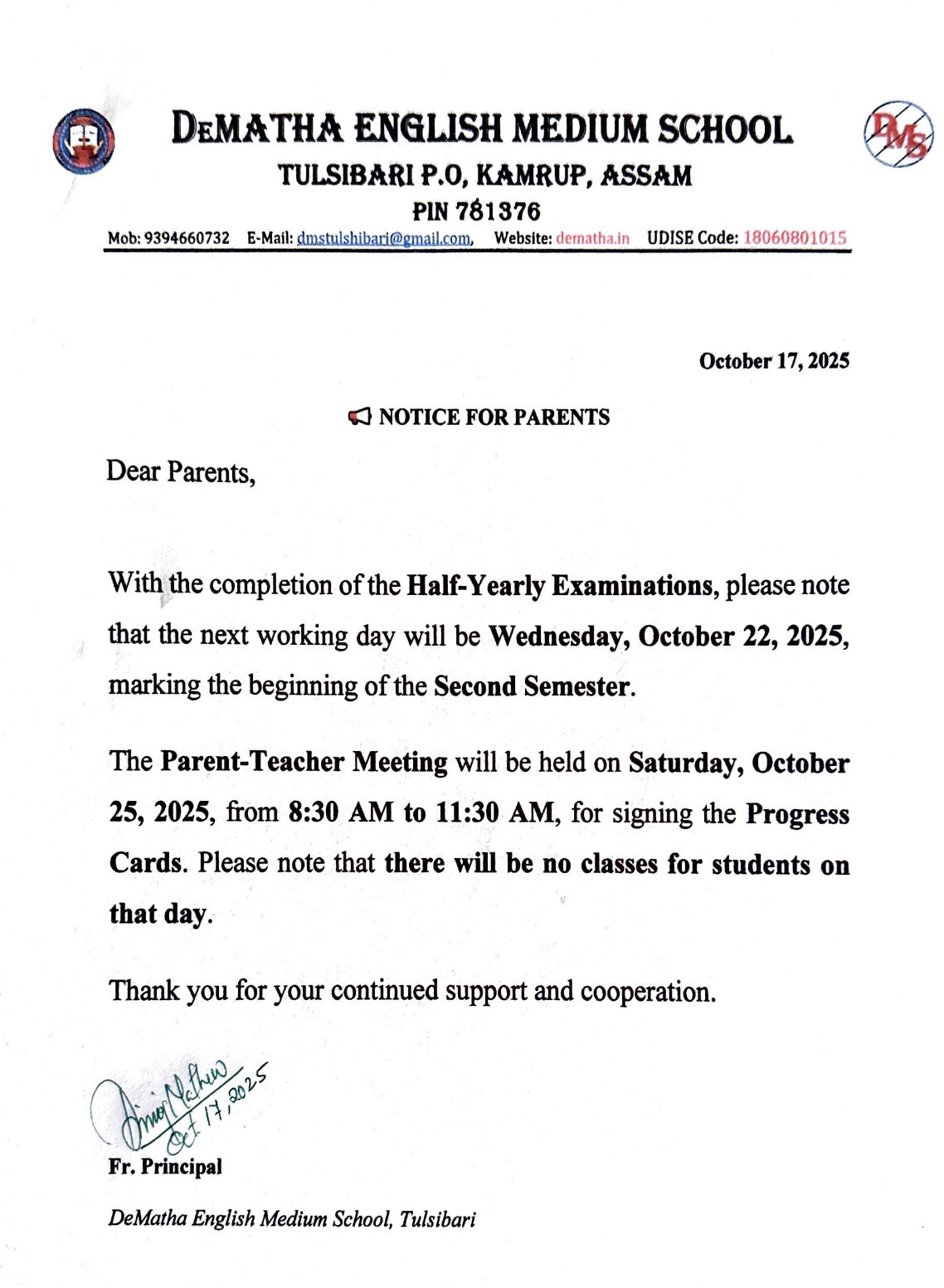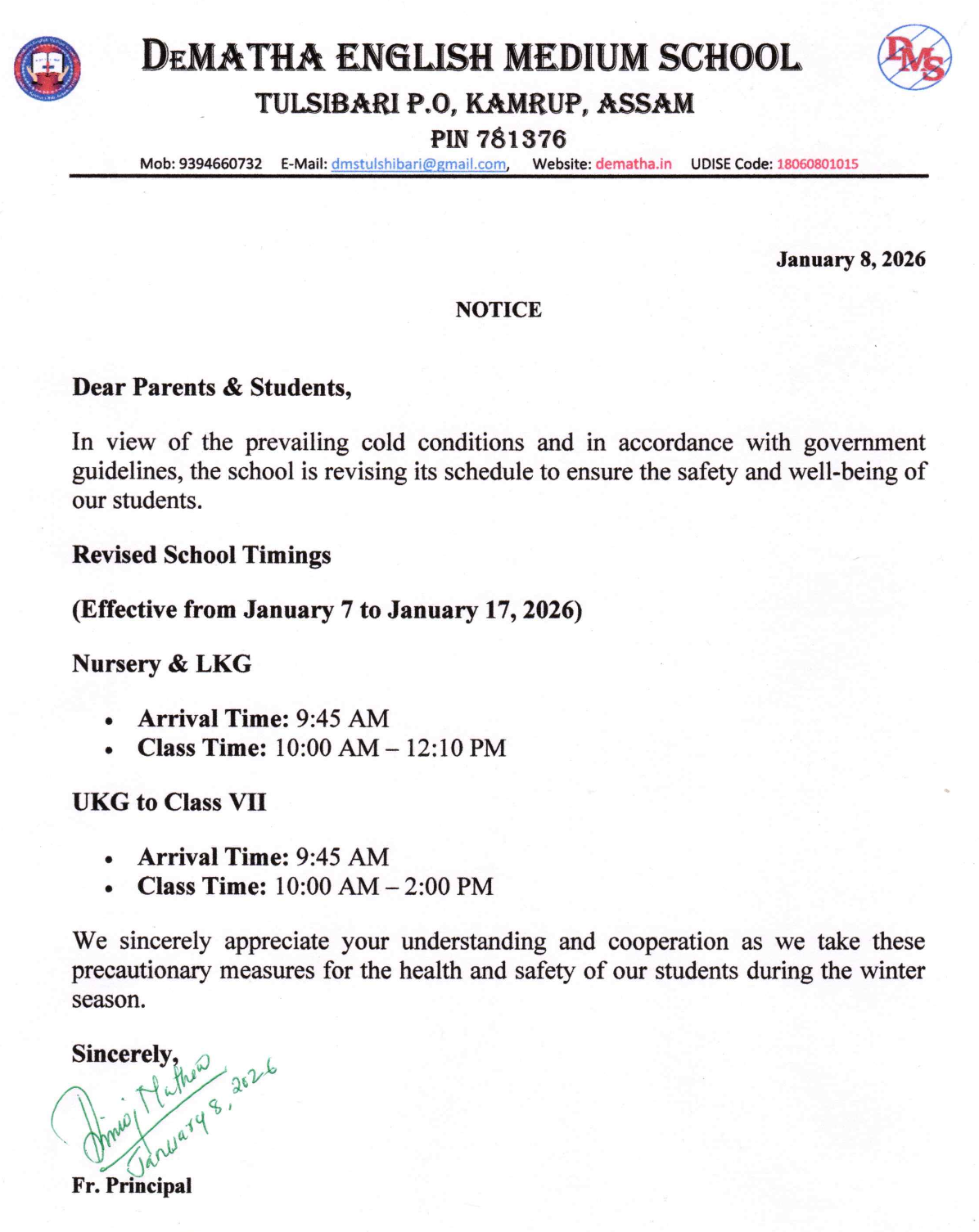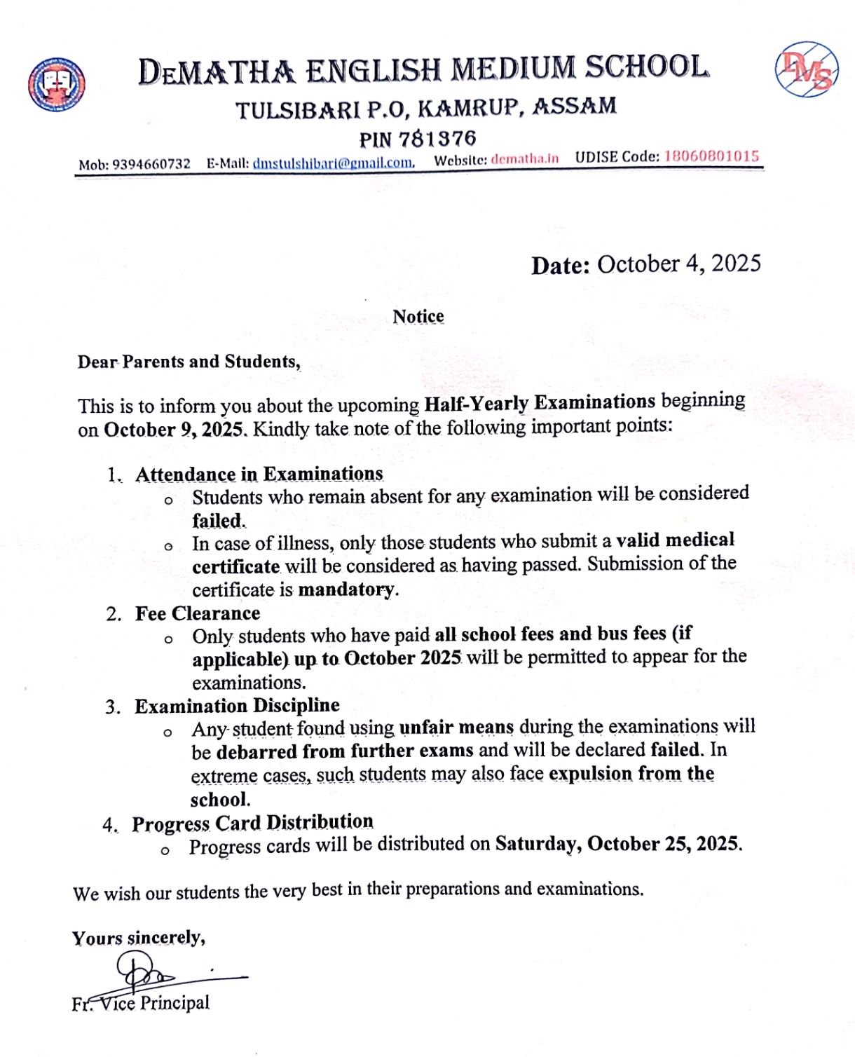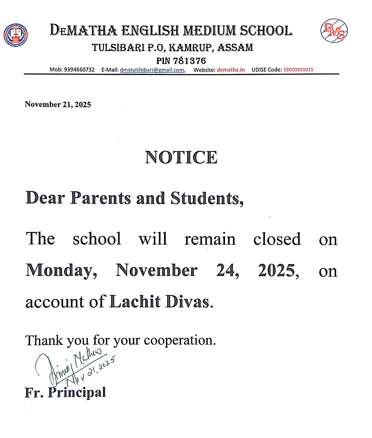 Dear Parents, Students, Faculty, and Staff, It is with immense joy and a deep sense of responsibility that I welcome you to DeMatha English Medium School. Established in 1192, our school is named after St. John de Matha, who was a priest and founder of the Order of the Most Holy Trinity and of the Captives.