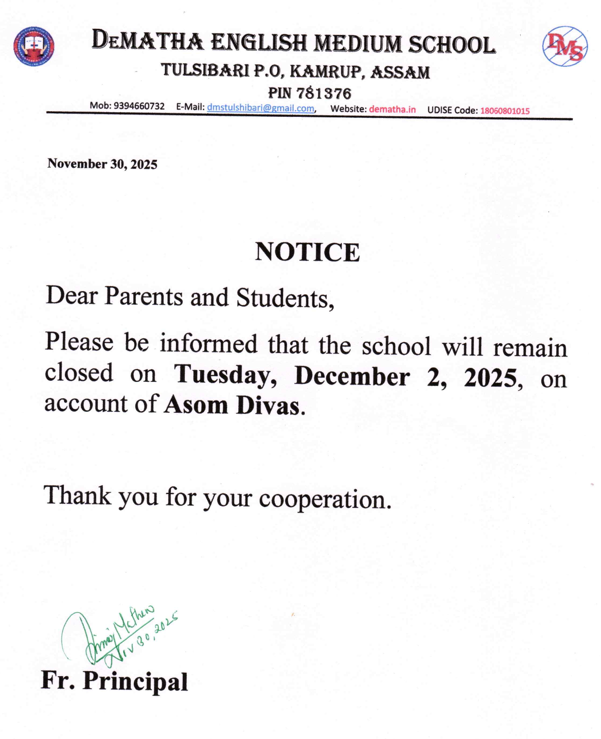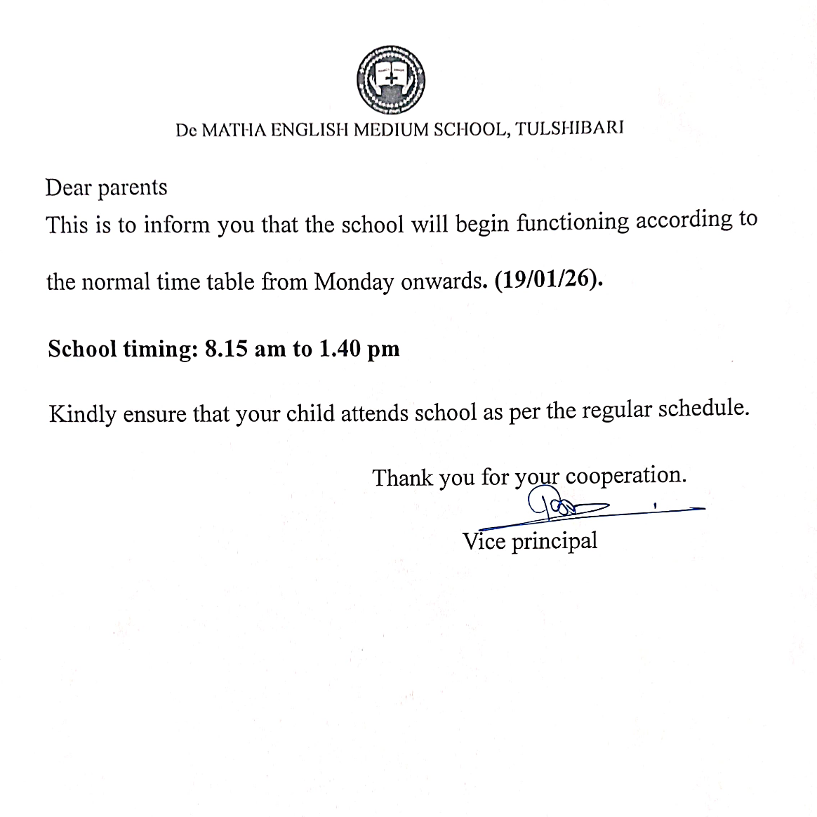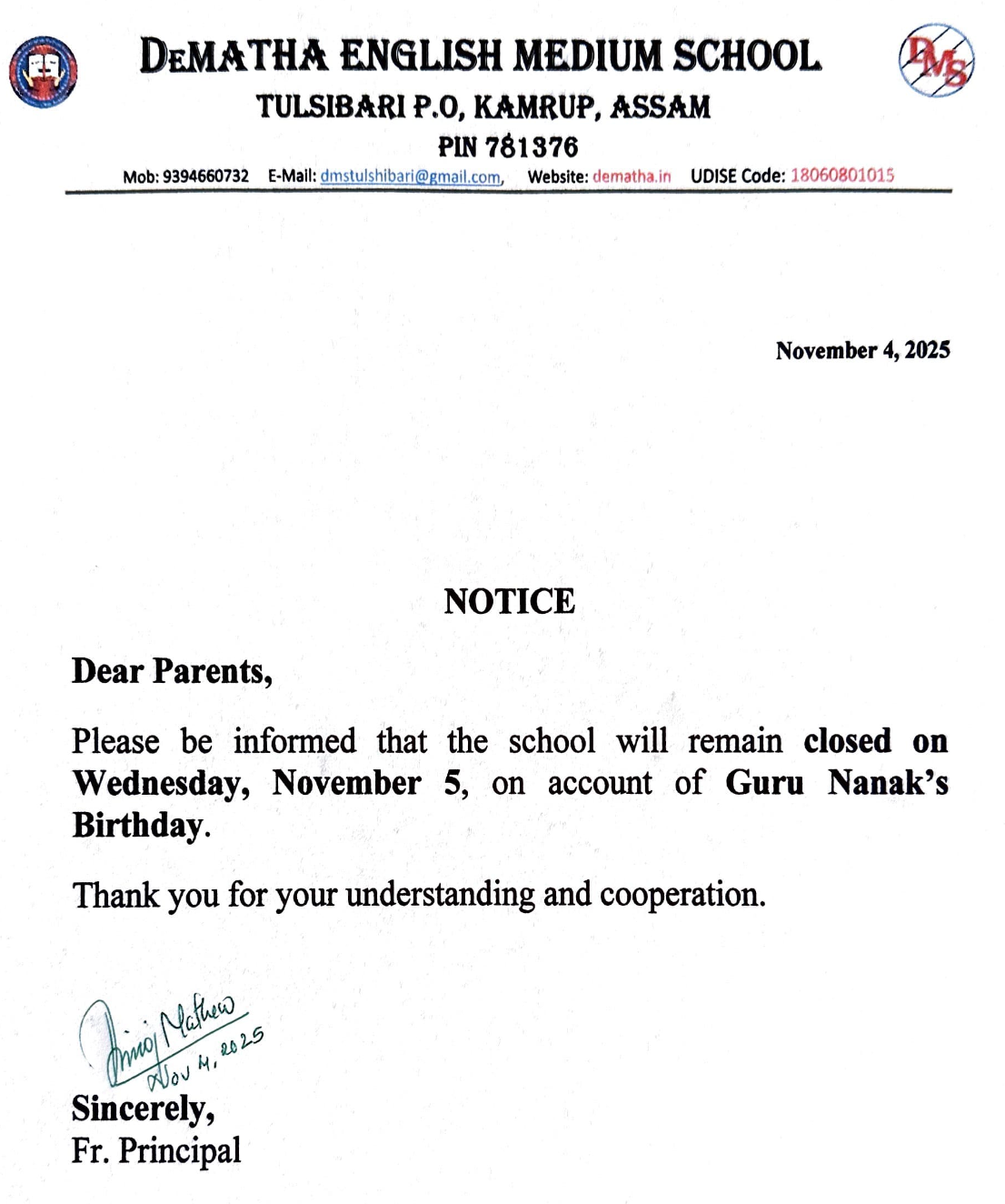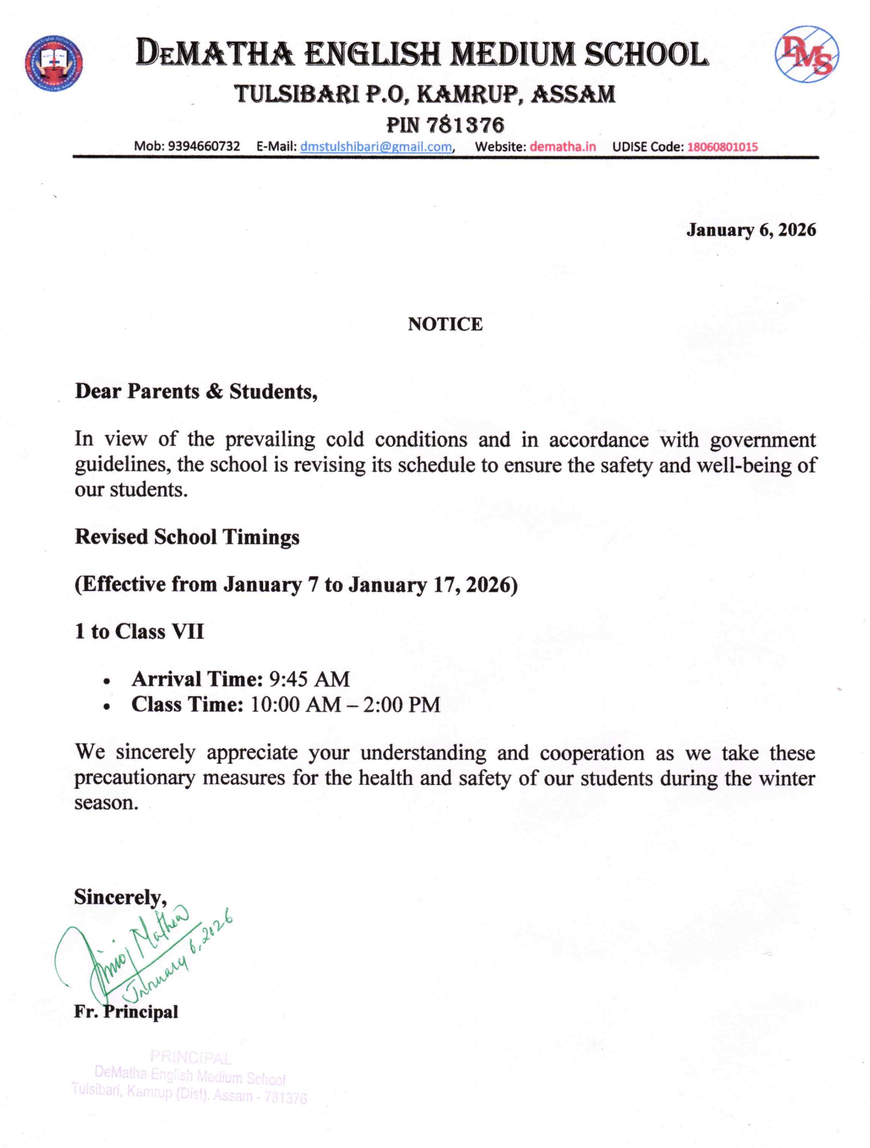 Dear Parents, Students, Faculty, and Staff, It is with immense joy and a deep sense of responsibility that I welcome you to DeMatha English Medium School. Established in 1192, our school is named after St. John de Matha, who was a priest and founder of the Order of the Most Holy Trinity and of the Captives.