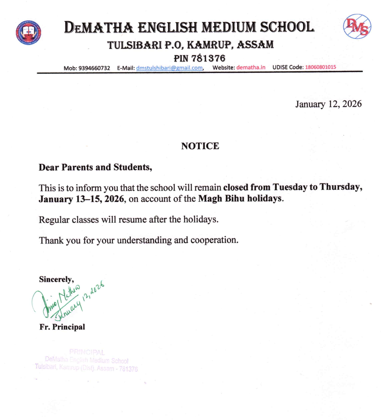 "Stay connected with us on social media to keep up with the latest news, events, and updates from DeMatha English Medium School.