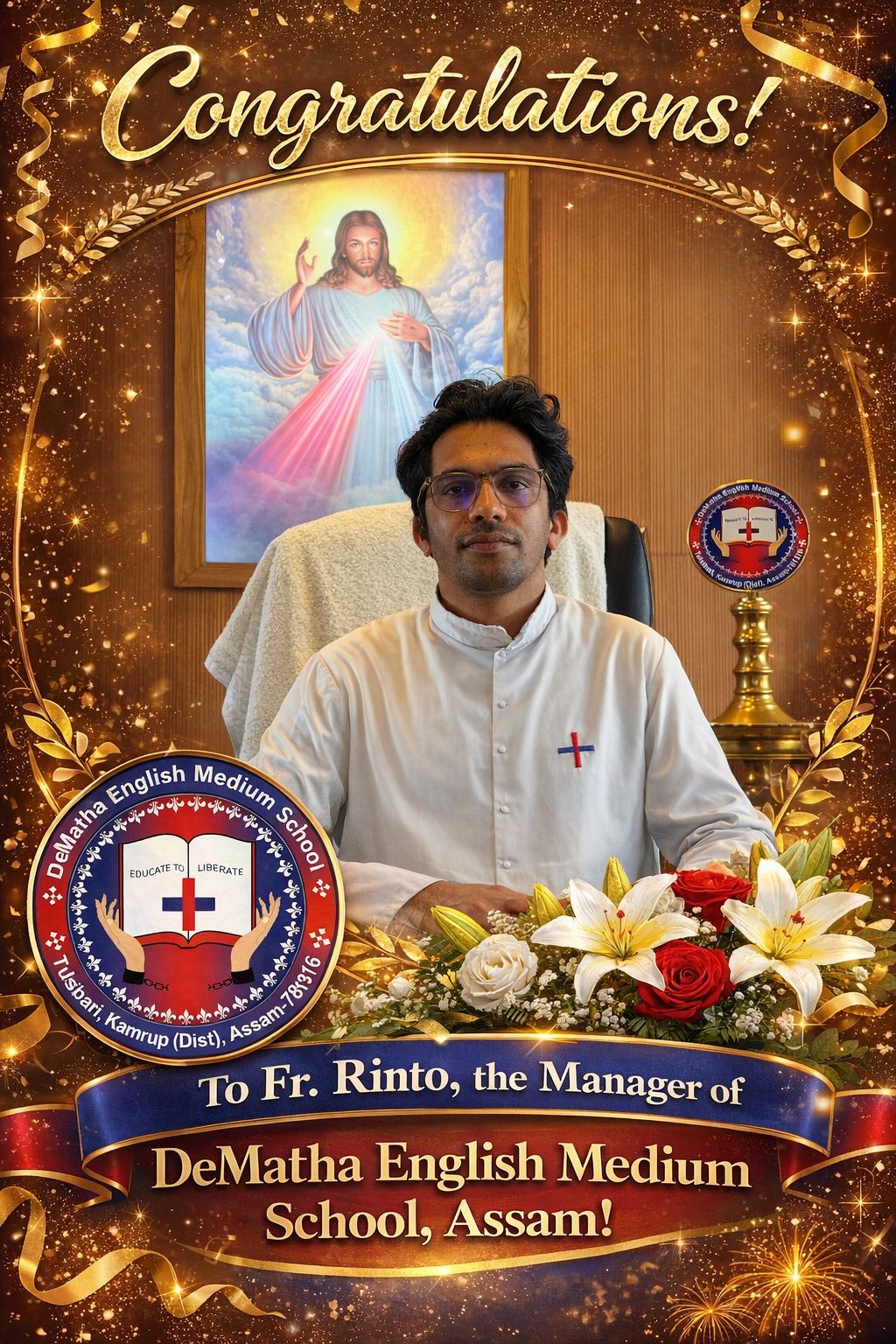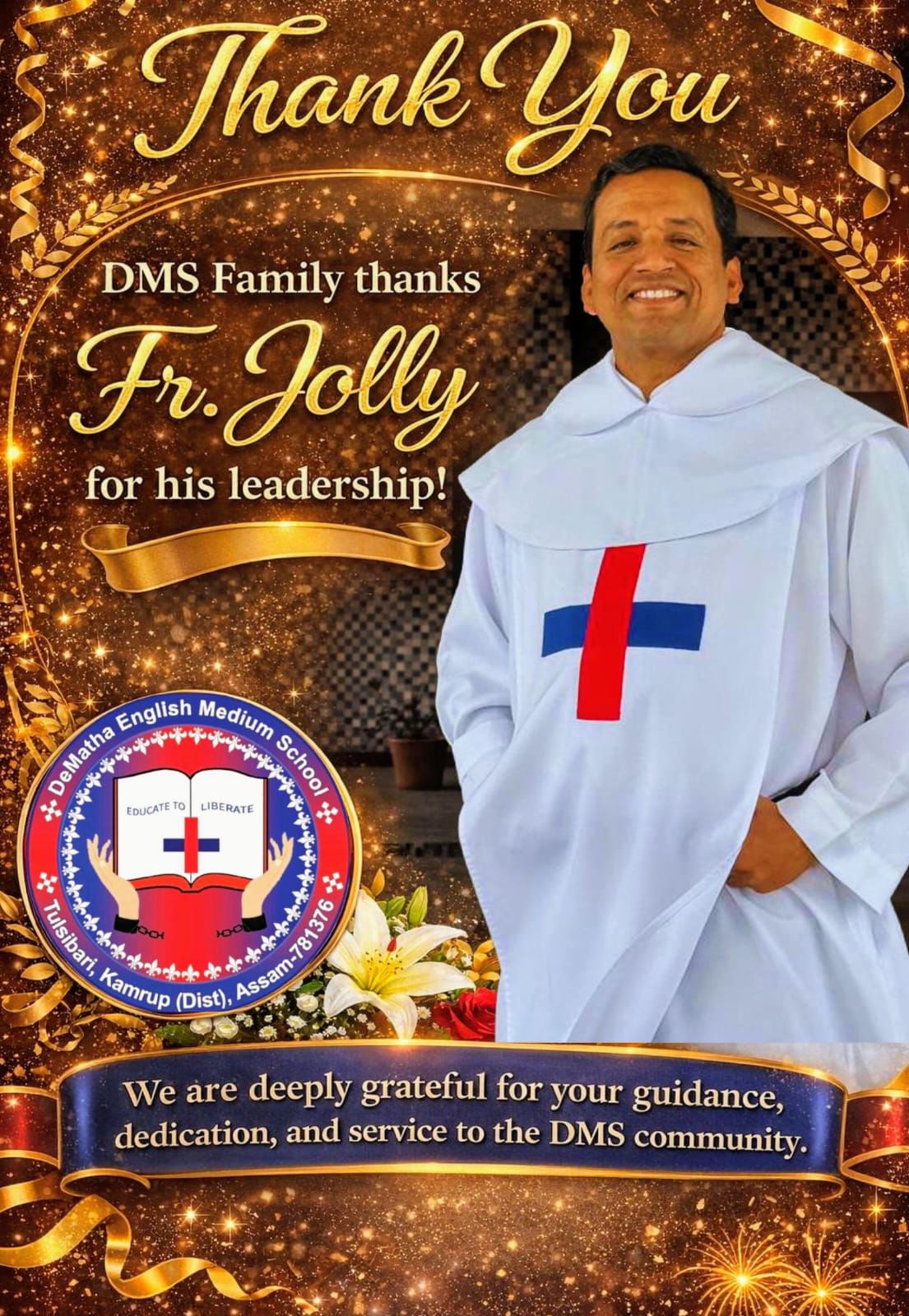 Dear Parents, Students, Faculty, and Staff, It is with immense joy and a deep sense of responsibility that I welcome you to DeMatha English Medium School. Established in 1192, our school is named after St. John de Matha, who was a priest and founder of the Order of the Most Holy Trinity and of the Captives.